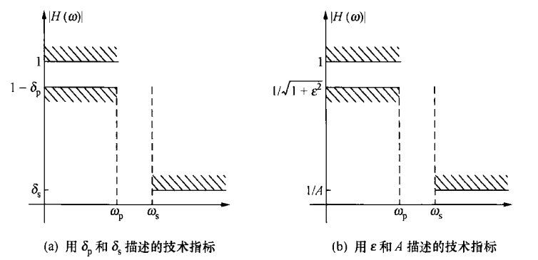 给定技术要求:通带截止频率 fp,阻带截止频率 fs,通带波动 δp,阻带波动 δs。